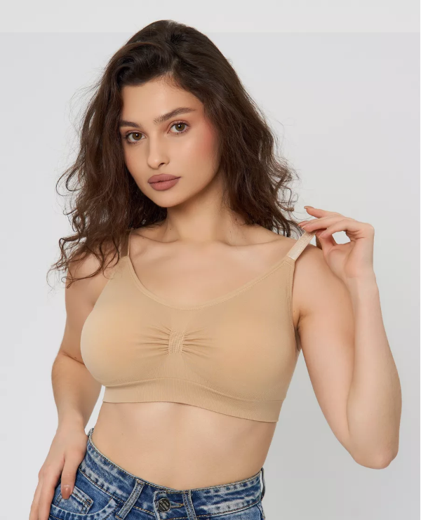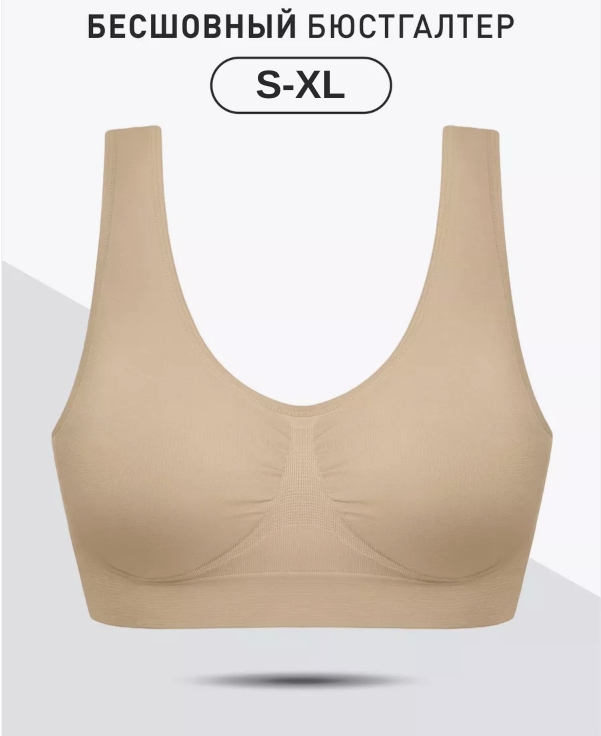 Бюстгальтер обеспечивает надежную поддержку благодаря отсутствию швов и широким бретелям