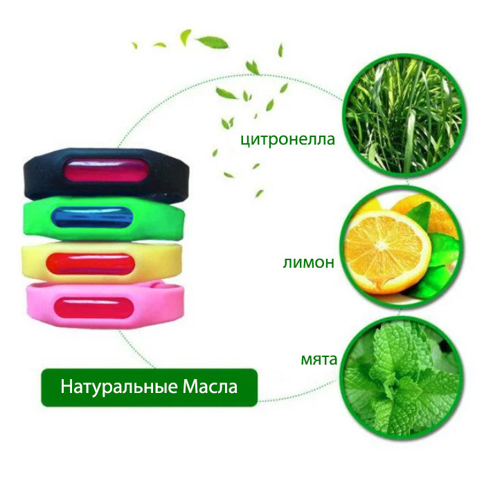 Благодаря составу капсулы браслета: цитронелла, лимон и мята в виде натуральных масел, этот браслет обеспечивает защиту от комаров и прочих насекомых в радиусе 5м.