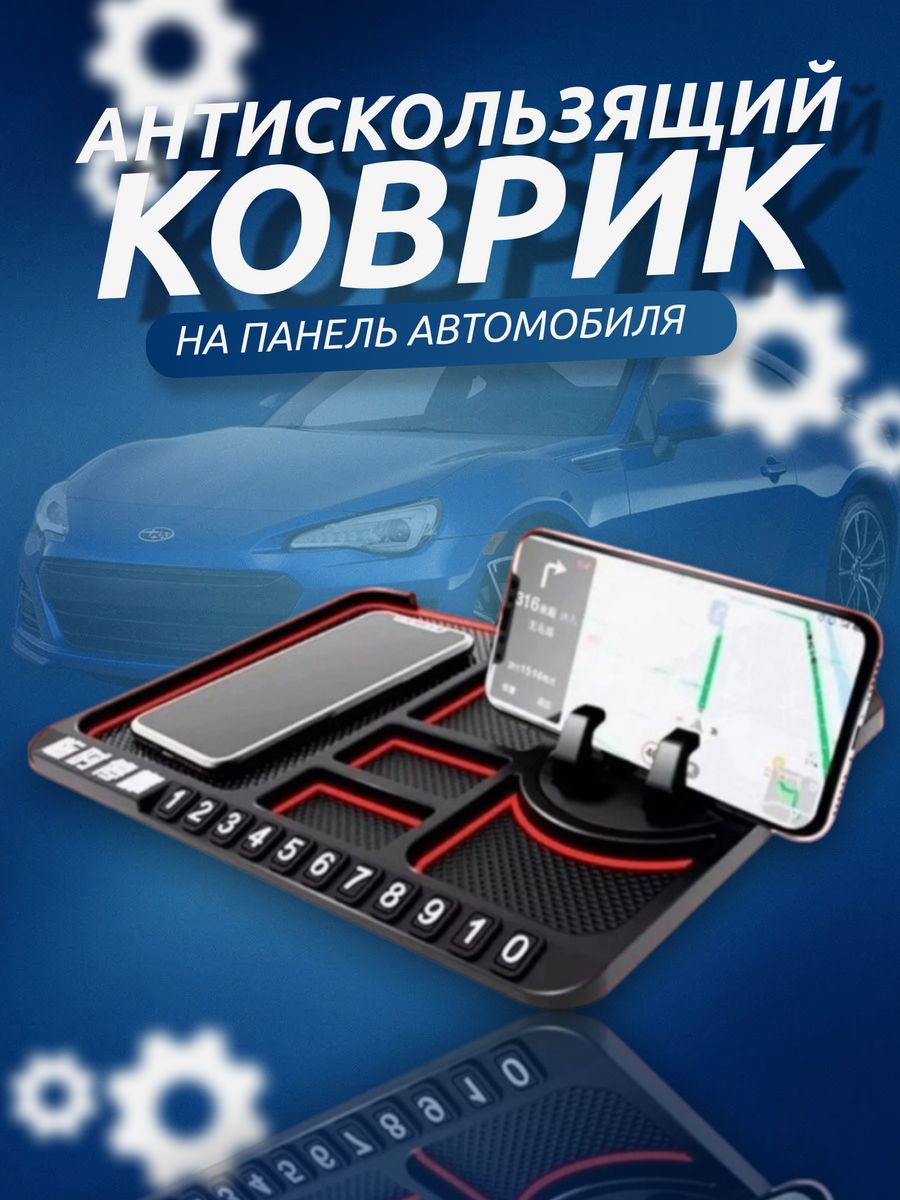 Сочетает в себе подставку для смартфона, коврик, ароматизатор и табличку с номером телефона