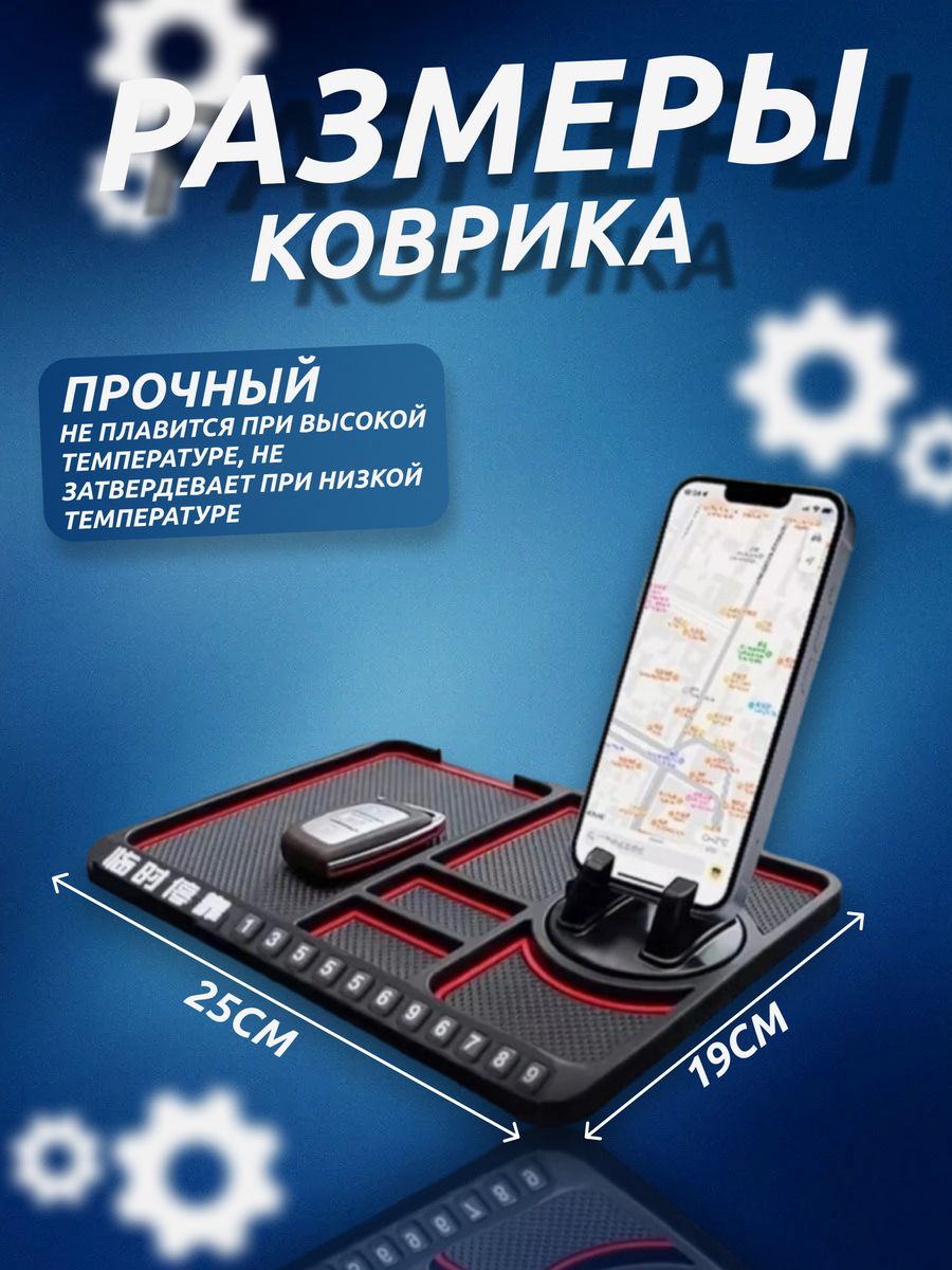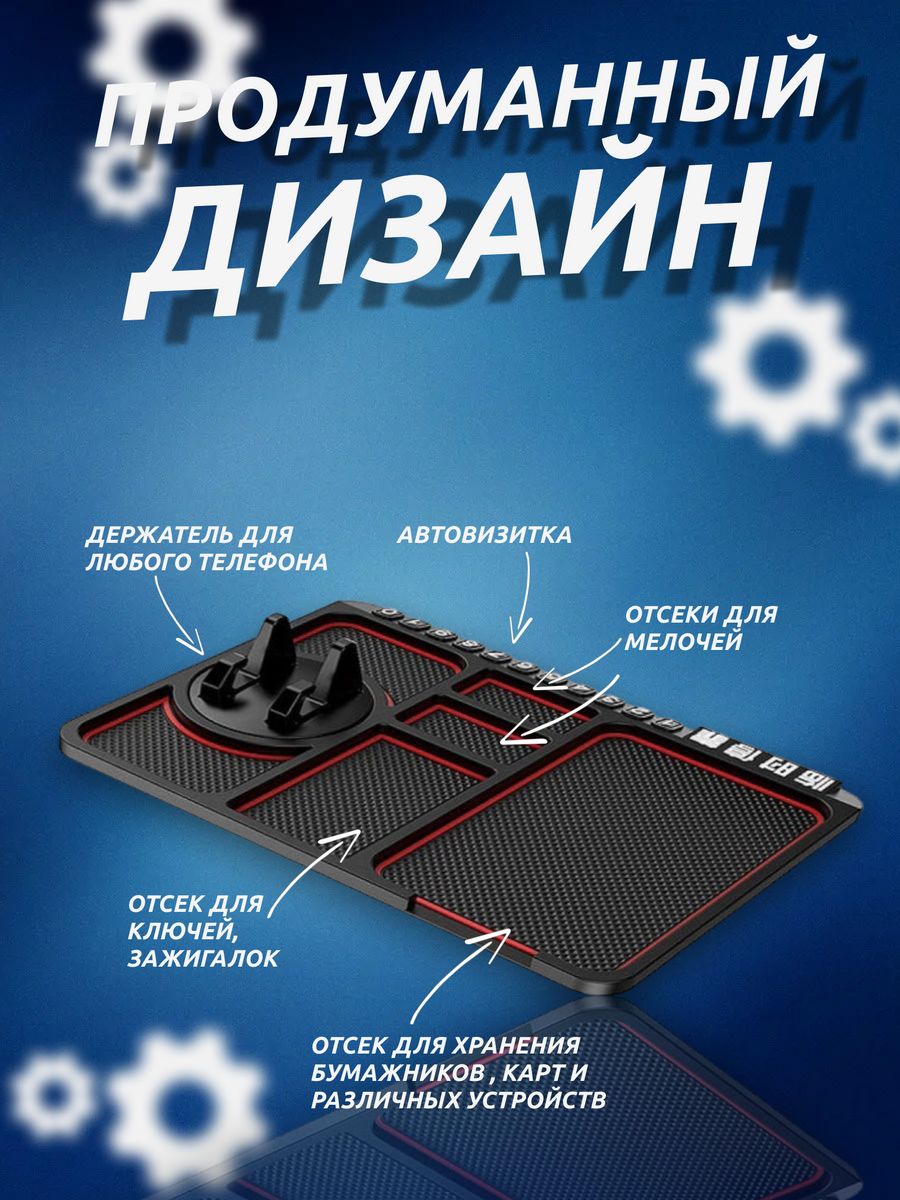 Цельный силиконовый коврик, без сложных процедур установки. Это не только коврик для приборной панели, а также автомобильное крепление для телефона и органайзер, чтобы держать приборную панель Вашего автомобиля в порядке