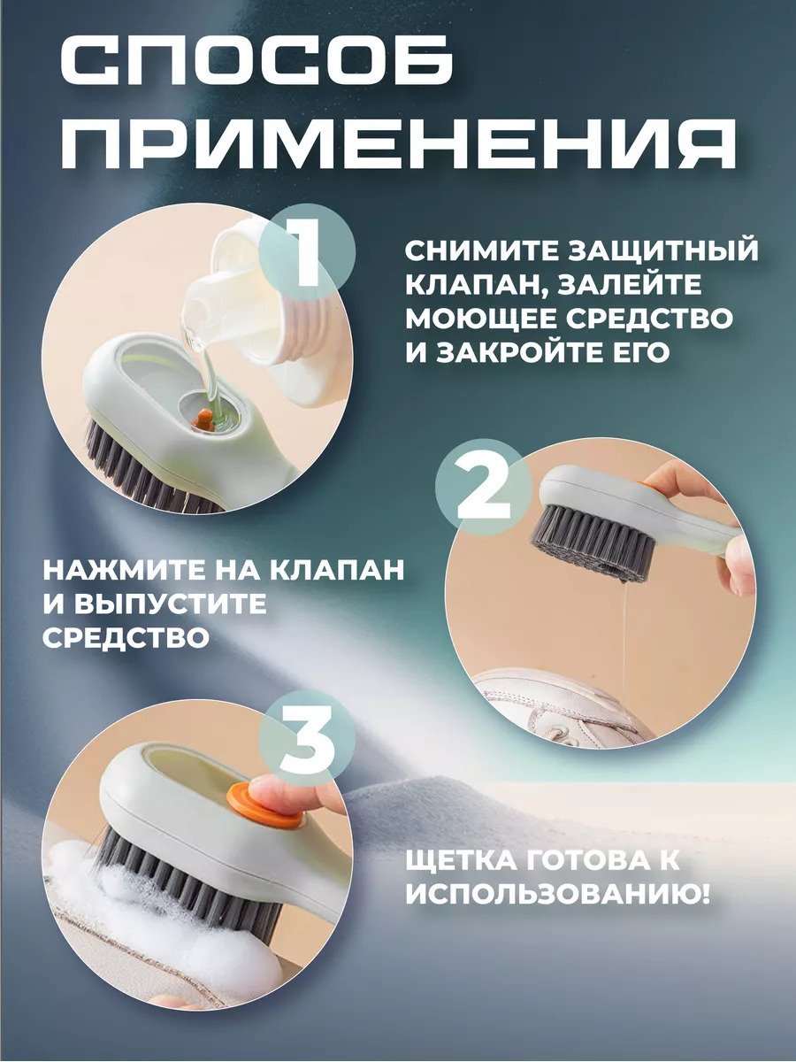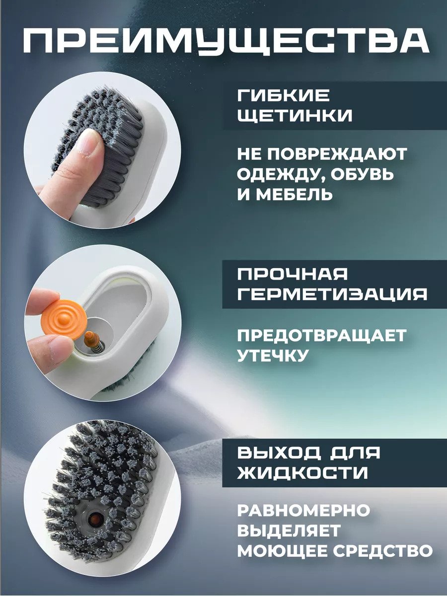 Наша щетка обладает уникальными свойствами, которые делают ее идеальным средством для чистки различных материалов. Неотъемлемым атрибутом нашей щетки является инновационный дозатор. С его помощью вы сможете легко наносить специальную очистительную жидкость на поверхности, делая процесс очистки еще более эффективным и удобным.