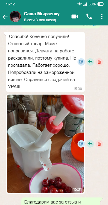 - Производительность: 12-13 кг. Вишни в час